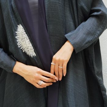 Light linen abaya , lined with light chiffon and scarf Dark grey