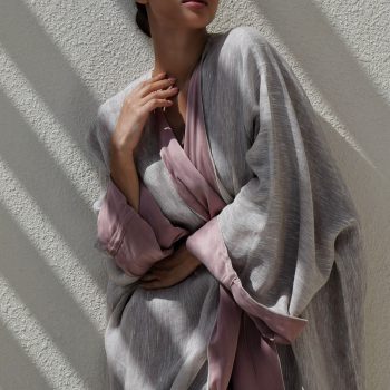 Abaya with a wrinkled scarf Pink / black