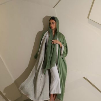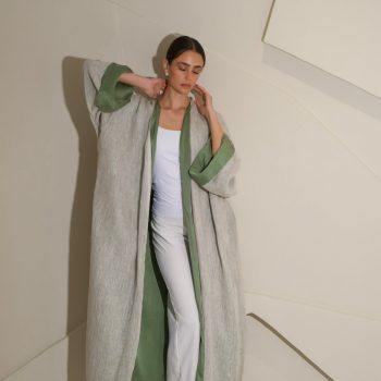 Grey Light linen abaya , lined with light chiffon and scarf Brown