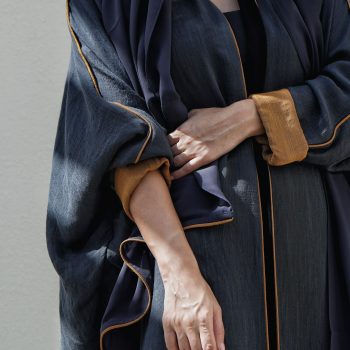 Wrinkled cotton silk abaya with embroidered dragonfly Blue